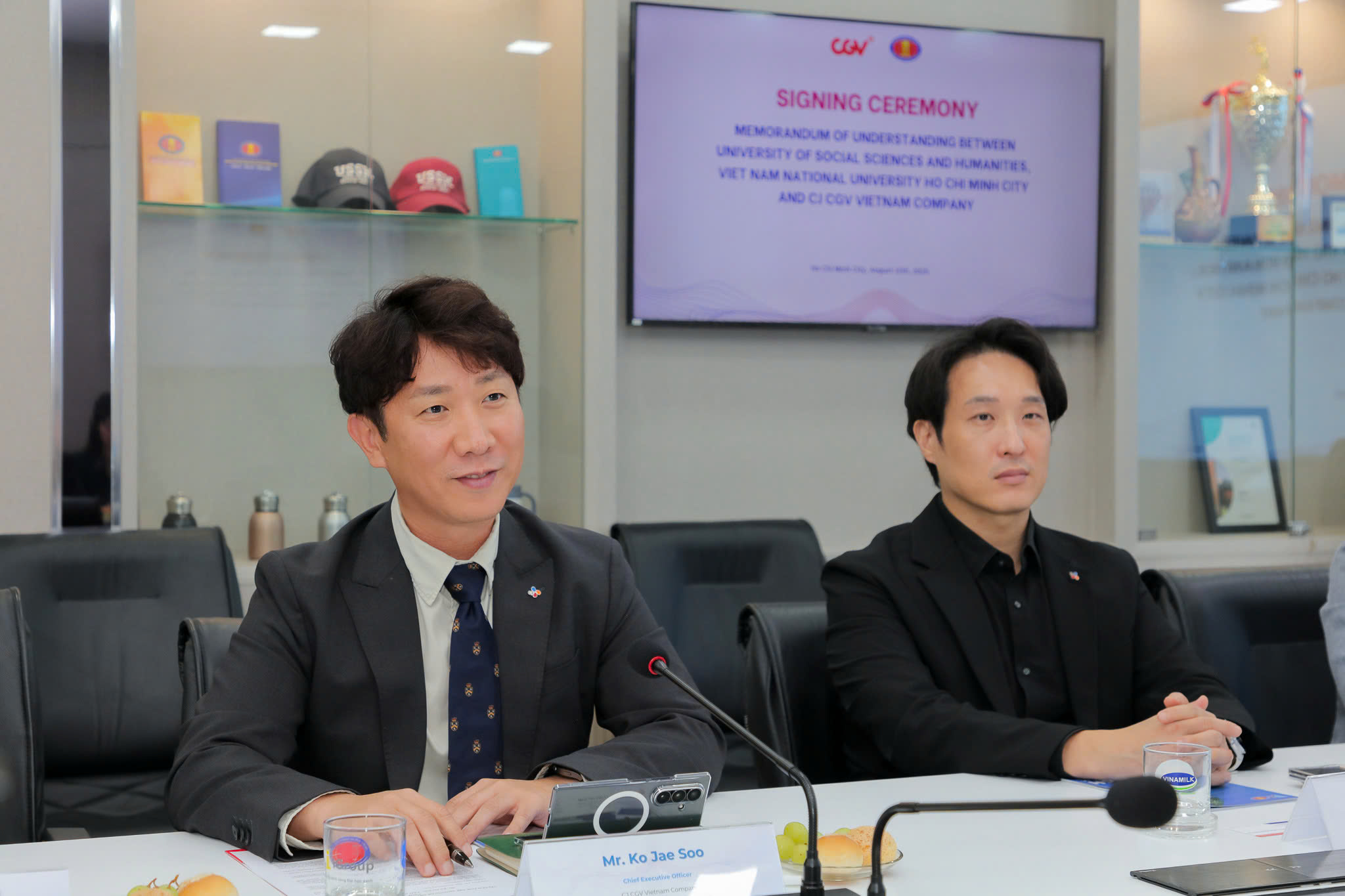 Phát biểu tại buổi lễ, ông Ko Jae Soo – Tổng Giám đốc CGV Việt Nam nhấn mạnh: “Chúng tôi tin rằng bằng cách kết hợp thế mạnh đào tạo của USSH với kinh nghiệm và mạng lưới trong ngành của CGV, các bạn sinh viên sẽ có thêm nhiều cơ hội học tập và trải nghiệm, góp phần phát triển nguồn nhân lực chất lượng cao cho ngành điện ảnh tại Việt Nam.”
