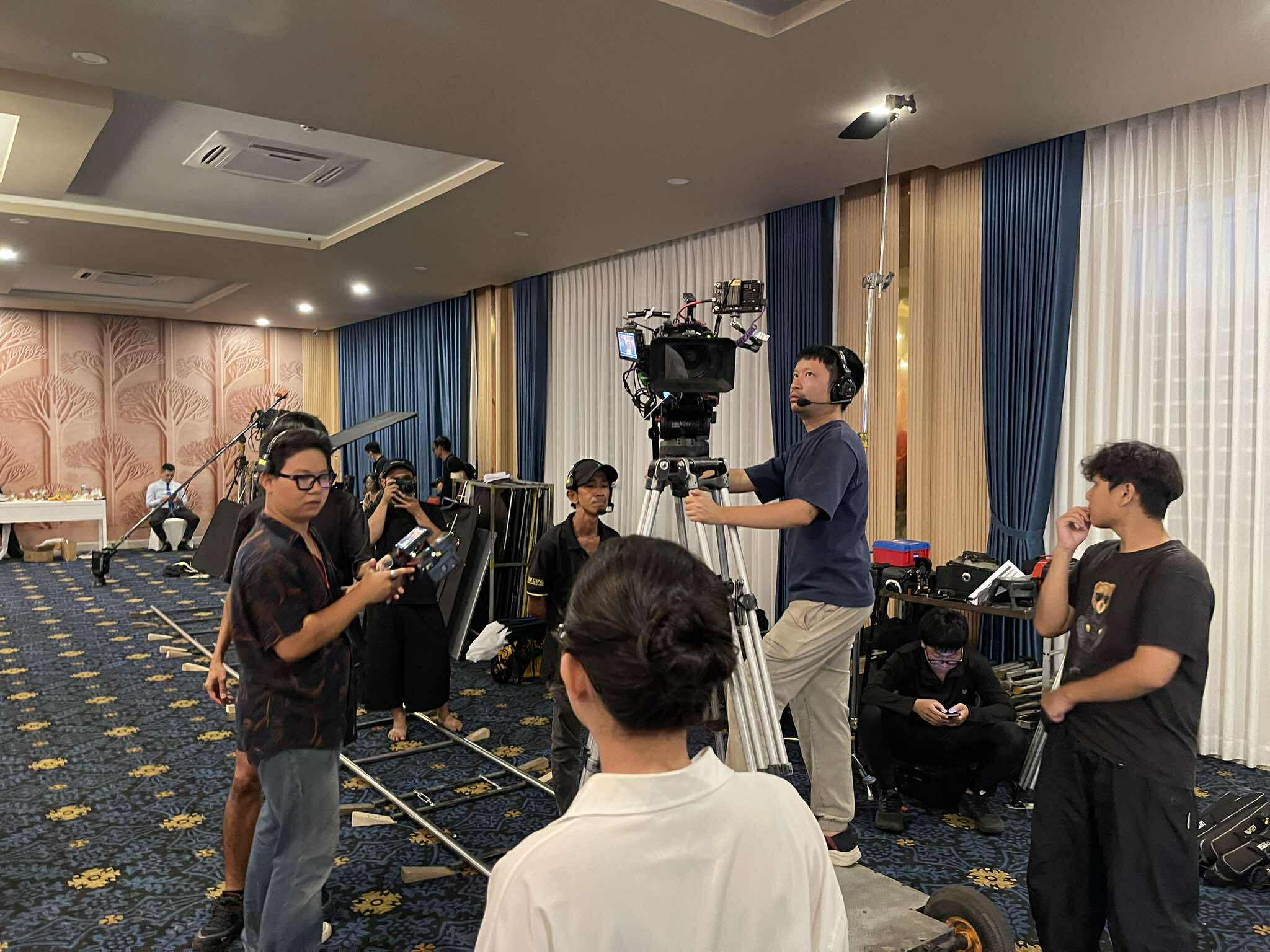 Đạo diễn Cầm Đức Hiệp (áo trắng) bắt đầu dự án điện ảnh đầu tay khi còn ngồi trên ghế nhà trường