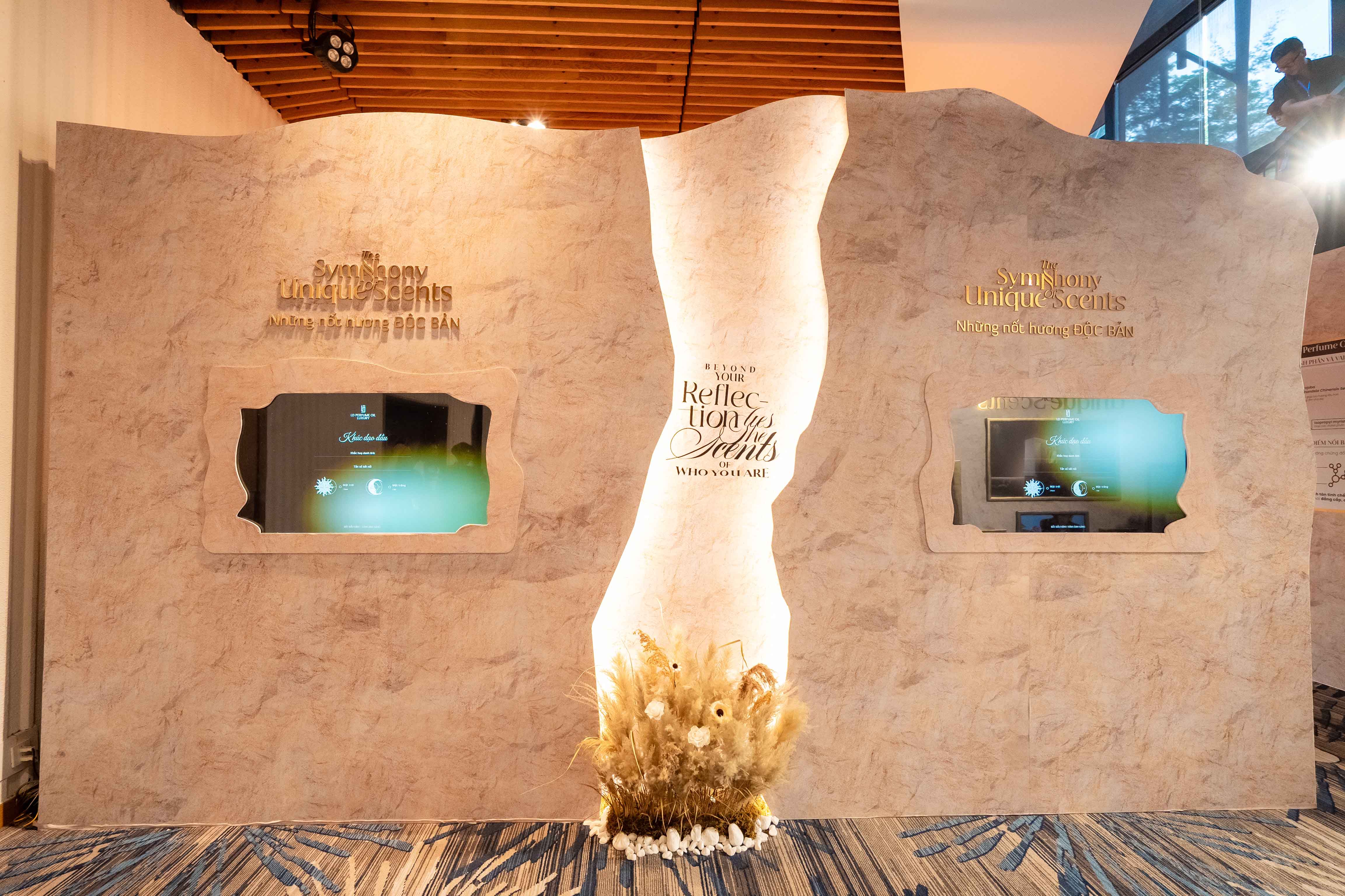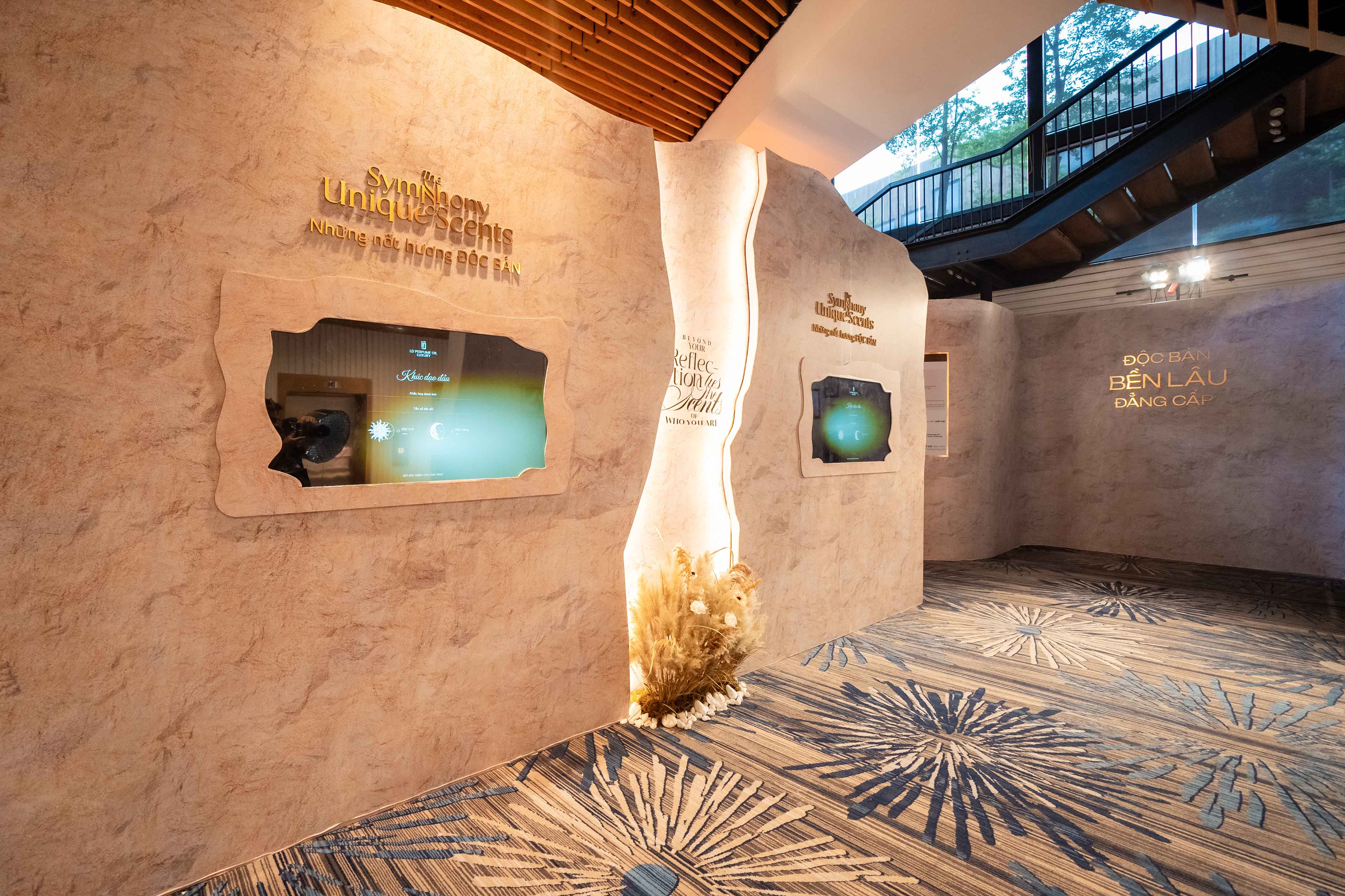 Khu vực thảm đỏ được thiết kế trang nhã, trong khi không gian trải nghiệm mùi hương mở ra một thế giới đa giác quan, nơi mỗi vị khách có thể tự chọn lớp hương phản chiếu cá tính riêng.