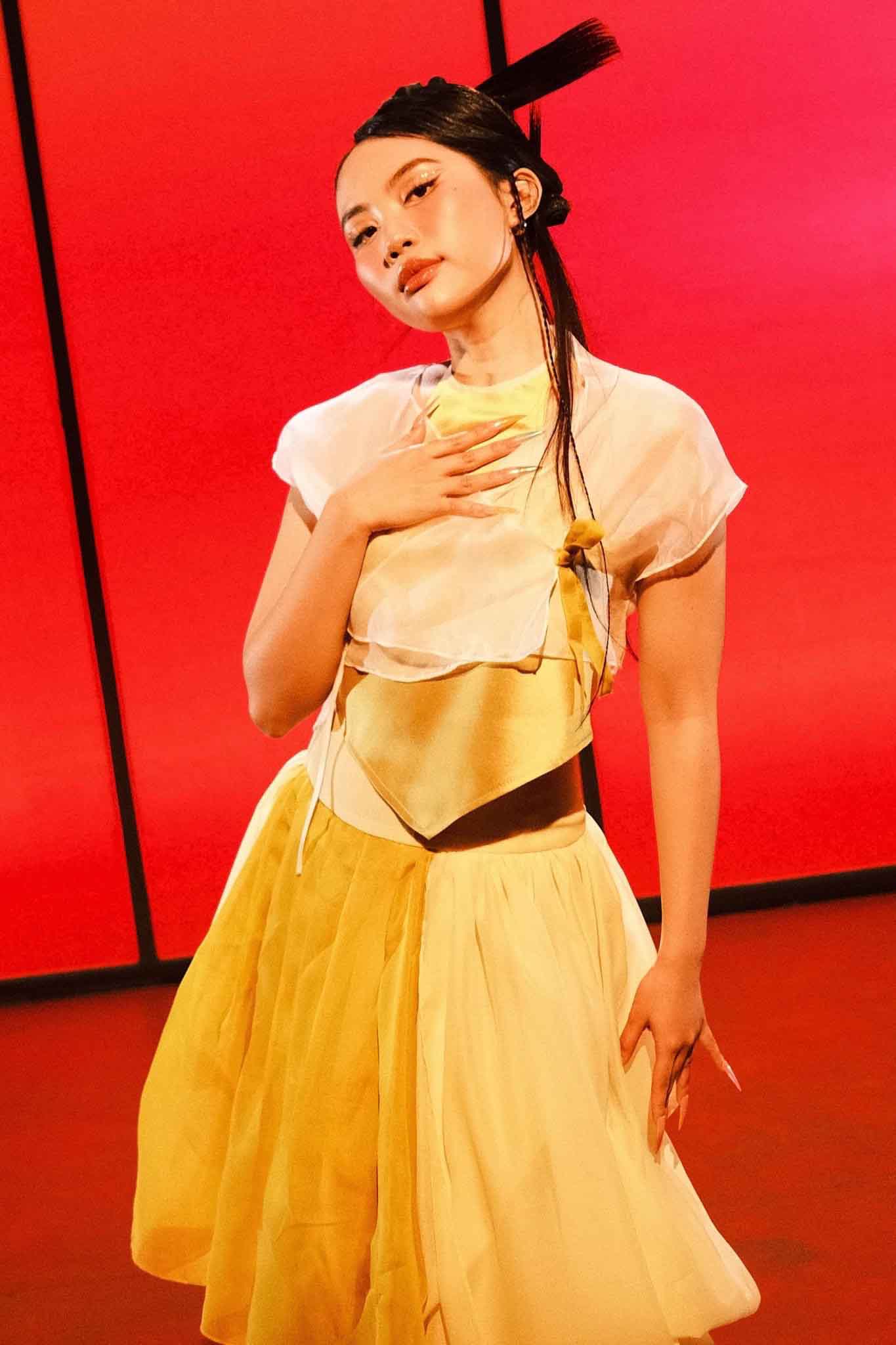 “Tôi nghĩ mình đã có cơ hội được làm hết mình. Từ layout đầu tiên ở Việt Nam với ‘Buôn Trăng’ vẫn còn đậm chất dân ca, đến Singapore với ‘Lý Bắc Bộ’ khi tôi thử layout má hồng ửng tinh nghịch, rồi tới Hong Kong với ‘Bóng Phù Hoa’ bắt đầu thử nghiệm đánh khối đậm hơn. Nhưng tất cả chỉ là màn khởi động. Mọi thứ bùng nổ ở Thượng Hải.” Tại vòng bán kết này, Khoa hoàn toàn lột xác phong cách makeup cho Chi. Với “Tuý Âm”, anh thay đổi toàn bộ kỹ thuật: cách đánh mắt, cách tạo khối, cách chọn màu son, cả tone má lẫn chi tiết nhỏ như kiểu lông mi. Kết quả là một layout khiến mạng xã hội không ngừng bàn tán, hình ảnh Chi xuất hiện rực rỡ trên khắp TikTok và Facebook, và lần đầu tiên công chúng gọi tên makeup artist sau một màn trình diễn.