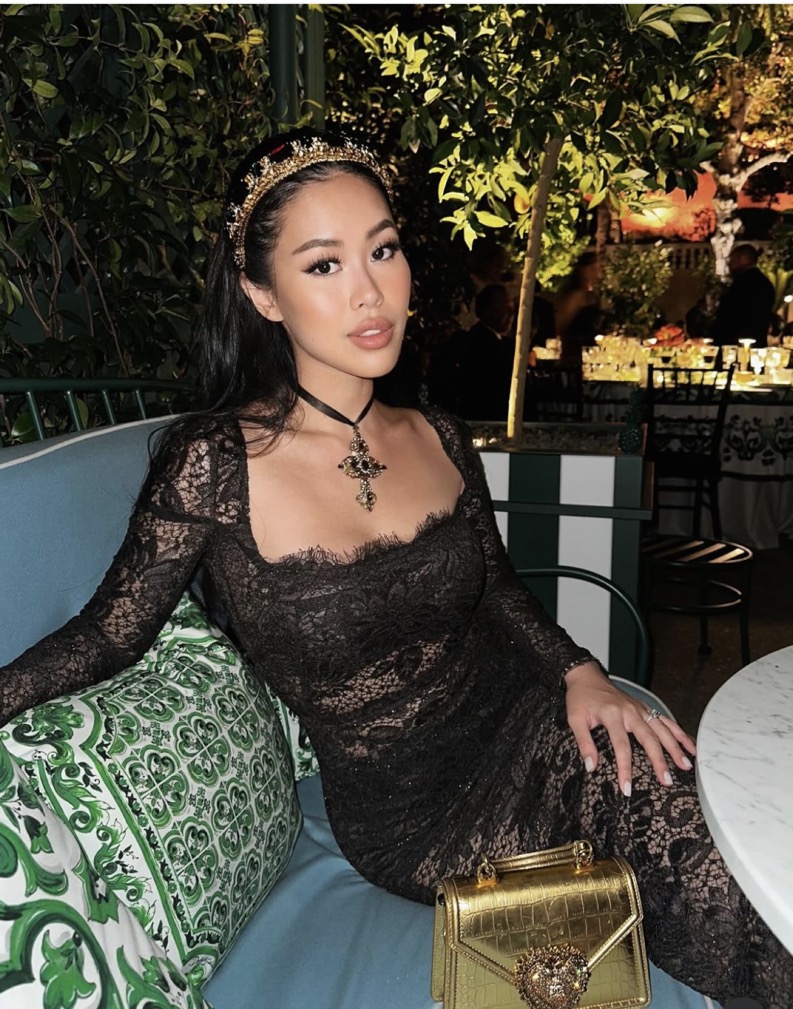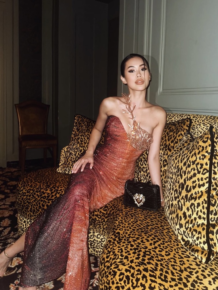 Trong các sự kiện khác, cô lần lượt chọn đầm ren xuyên thấu tôn dáng, đầm tua rua bắt sáng, và thiết kế cúp ngực đính pha lê đắt giá – mỗi outfit đều thể hiện sự quyến rũ, chỉn chu và gu thẩm mỹ thời thượng. Các phụ kiện cô sử dụng như túi Devotion, clutch mini hay sandals quai mảnh đều đến từ Dolce & Gabbana, góp phần hoàn thiện vẻ ngoài đẳng cấp.
